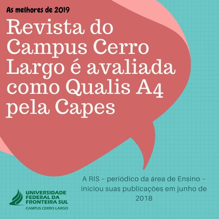 4- Revista do Campus Cerro Largo é avaliada como Qualis A4 pela Capes. A RIS – periódico da área de Ensino – iniciou suas publicações em junho de 2018.