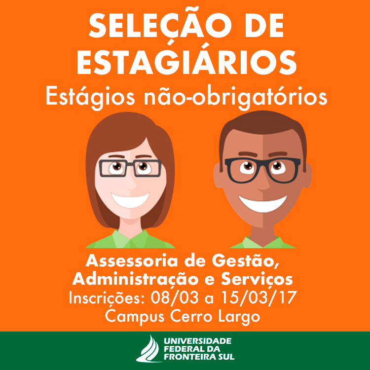 A partir da próxima quarta-feira (8) iniciam as inscrições para o processo seletivo para contratação de estagiários na Assessoria de Gestão, Administração e Serviços do Campus Cerro Largo.