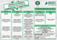 Durante o evento, serão realizadas palestras com temas variados, como os caminhos profissionais de um engenheiro ambiental, sistemas híbridos de geração de energia renovável, contaminantes emergentes, processos de separação por membranas, entre outros assuntos. Além disso, os inscritos vão poder participar de minicursos sobre os temas: calculadora científica, iniciação à prática científica, aplicação de SIG na Engenharia Ambiental e Sanitária, licenciamento ambiental, autocad e biodiesel.