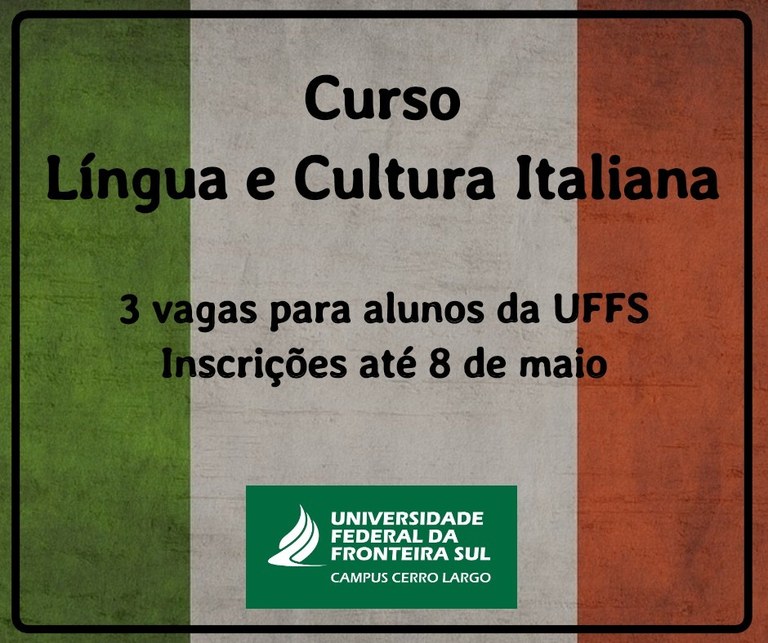 O Programa de Extensão Interagindo com a cultura italiana no Noroeste do Rio Grande do Sul, realizado em parceria entre a UFFS e a Associação Cerrolarguense da Etnia Italiana (ACEI) está com três vagas abertas para alunos da UFFS no curso de Língua e Cultura Italiana.