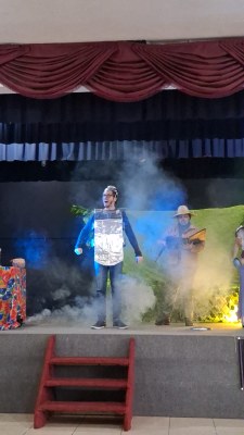 A estudante de Geografia Mariana Parnoff da Cruz considera que a experiência foi incrível. “Uma das apresentações mais marcantes foi a contação de histórias no Instituto do Livramento, onde contei a lenda do Saci Pererê para as crianças. A alegria delas e a interação durante a contação fez meu amor pelo teatro crescer ainda mais. A cultura influencia e é influenciada pelo ambiente em que está inserida. Pude observar isso na cidade Santana do Livramento, na fronteira com o Uruguai, lá essa interação é visível nas paisagens, nos idiomas e nas interações entre as pessoas, no dia a dia. Para mim, como estudante de geografia, futura professora e também como amante do teatro, essa experiência mostrou como a arte pode ser uma ferramenta poderosa para explorar e entender o mundo ao nosso redor”.