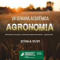 Está programada para ocorrer, entre os dias 27 de junho e 1º de julho, a VII Semana Acadêmica de Agronomia (VII Semanagro) da UFFS — Campus Laranjeiras do Sul. O objetivo do evento é capacitar a comunidade acadêmica e proporcionar a troca de informações e a vivência cultural.