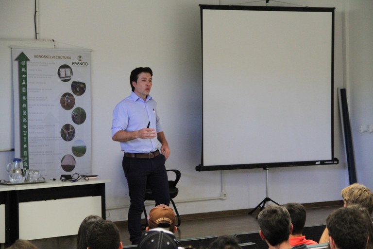 A palestra é ministrada pelo Engenheiro Agrônomo Pedro Francio, que durante sua fala abordará os tópicos: sistemas agroflorestais, florestas de alta produtividade, escolha de espécies e espaçamentos, metodologia inovadora, planejamento/implantação/condução, equilíbrio e fertilidade do solo, preparo adequado do terreno e qualidade de mudas.