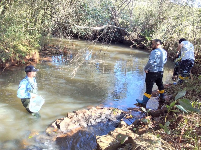 Está em desenvolvimento, na UFFS - Campus Laranjeiras do Sul, uma pesquisa de mestrado que tem por objetivo realizar o levantamento da ictiofauna na bacia hidrográfica do rio Leão, no assentamento 8 de Junho, em Laranjeiras do Sul.