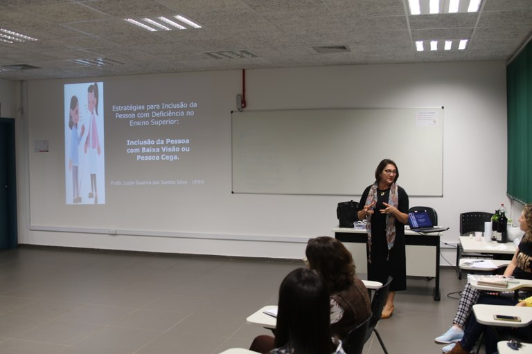 A capacitação foi proferida pela professora doutora Luzia Guacira Santos Silva, da Universidade Federal do Rio Grande do Norte (UFRN), que abordou dificuldades e desafios da UFRN e de sua experiência em lecionar para pessoas cegas ou com baixa visão. Houve também o relato de um professor da UFRN que perdeu a visão ao longo do curso de Medicina.