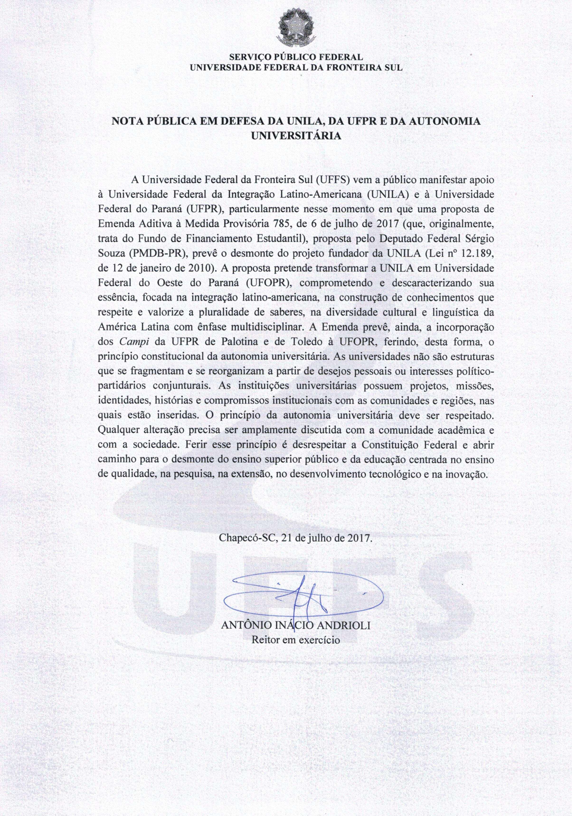 Nota em apoio à Unila, à UFPR e em defesa da autonomia universitária (JPEG)